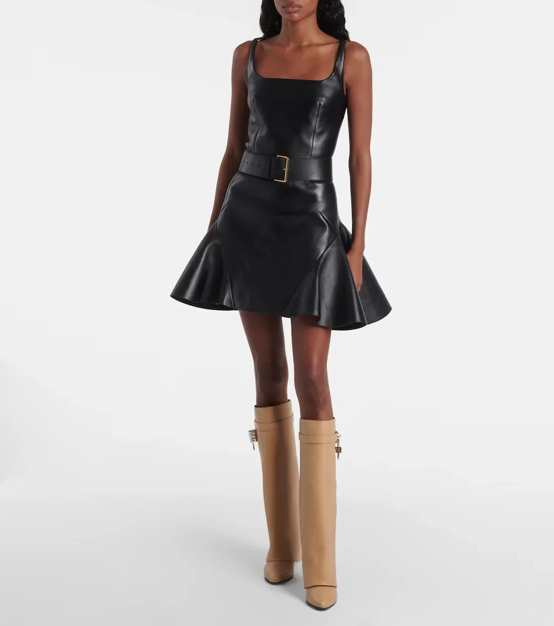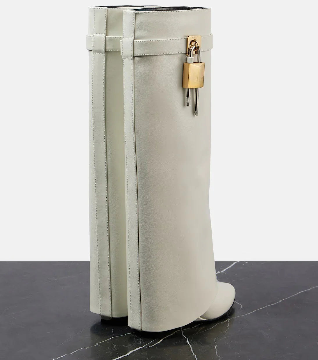 Altura: Botas hasta la rodilla, con estructura rígida y corte arquitectónico.