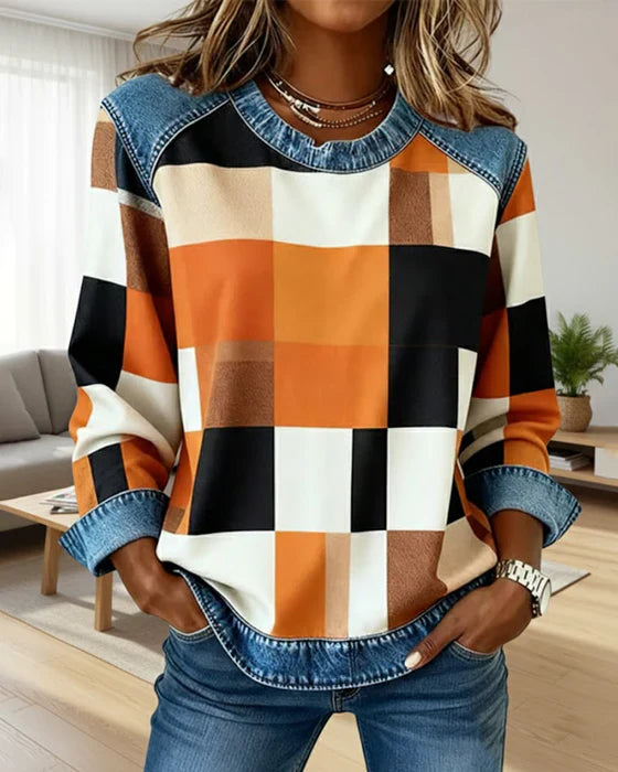La Sudadera Cuadros Contrastados redefine el estilo cotidiano con una fusión perfecta entre comodidad y diseño moderno. Su estampado de cuadros en tonos cálidos se equilibra con los acabados en mezclilla, creando un look audaz y contemporáneo que refleja confianza y personalidad.
